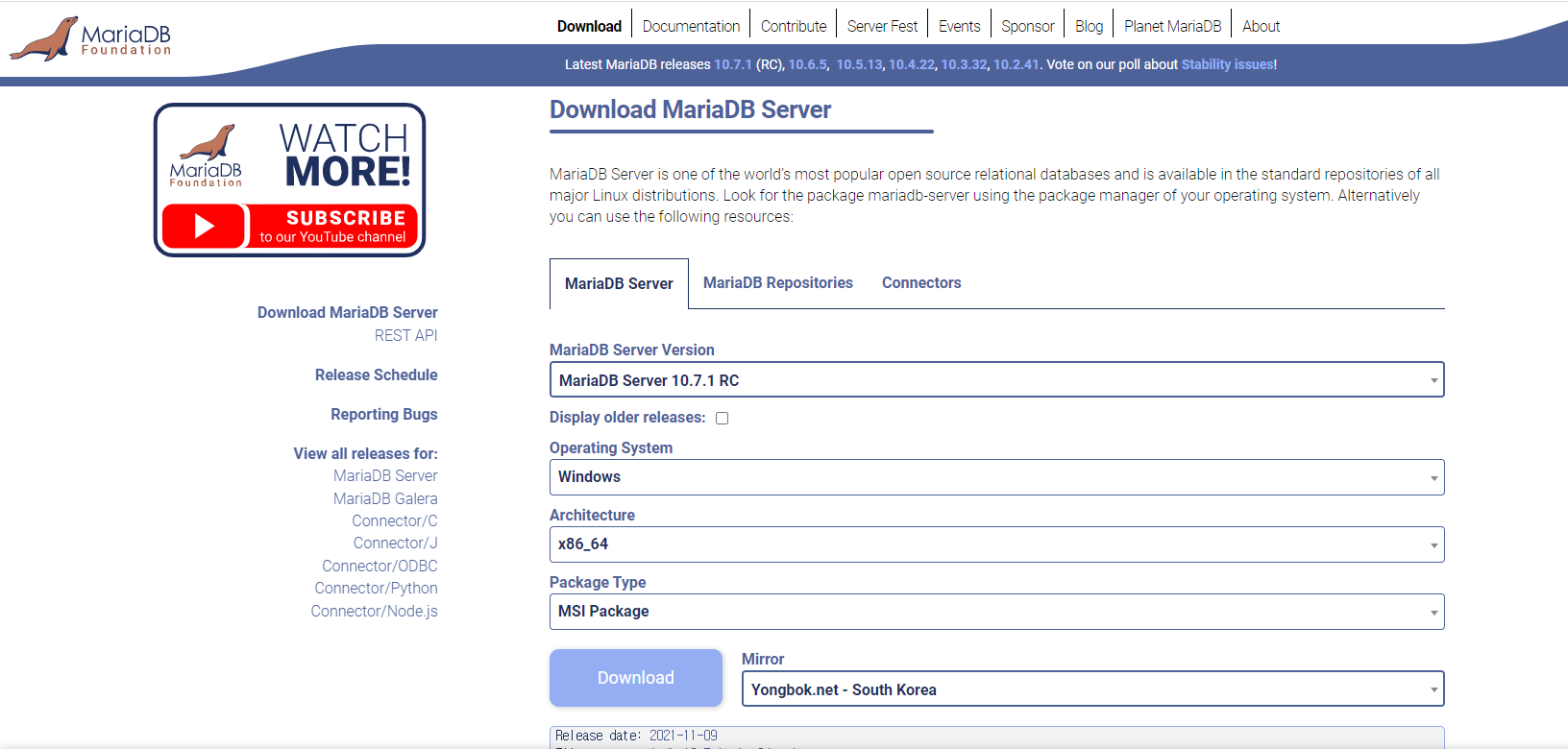 | [MariaDB] 마리아디비 버전 확인 (0) | 2022.01.15 |