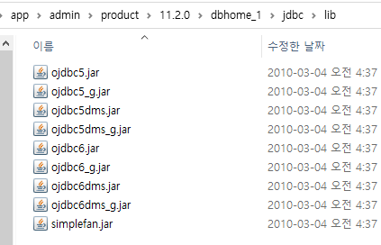 JDBC 드라이버 위치는 오라클 설치한 위치마다 다르겠지만 보통 기본이면 아래와 같다.