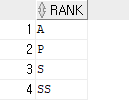 RANK라는 테이블에는 A, S, SS, P 의 값이 있는데 해당 값을