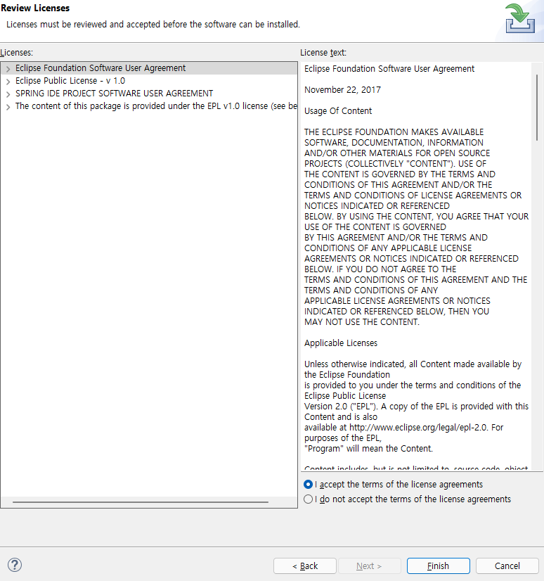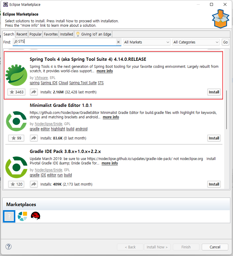 내가 STS가 아닌 이클립스를 설치해서 그러는거긴한데, STS확장 모듈을 설치해주면 된다.
