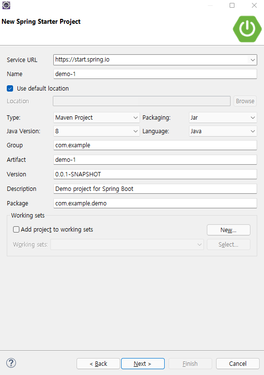 하면 이렇게 Spring프로젝트를 생성할 수 있다.