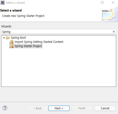 이클립스에서 SpringBoot 프로젝트를 시작해보려고 했더니 나오지않는다.