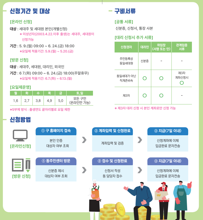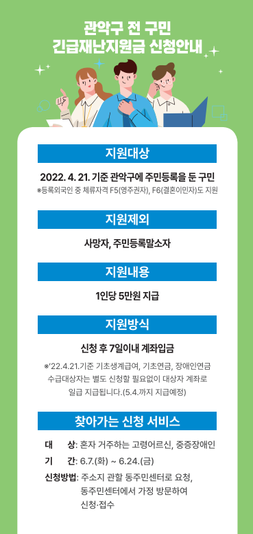 구민에게 1인당 5만 원씩의 긴급재난지원금을 지급합니다.