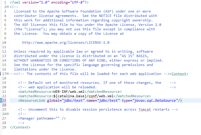 <ResourceLink global="jdbc/test" name="jdbc/test" type="javax.sql.DataSource"/>