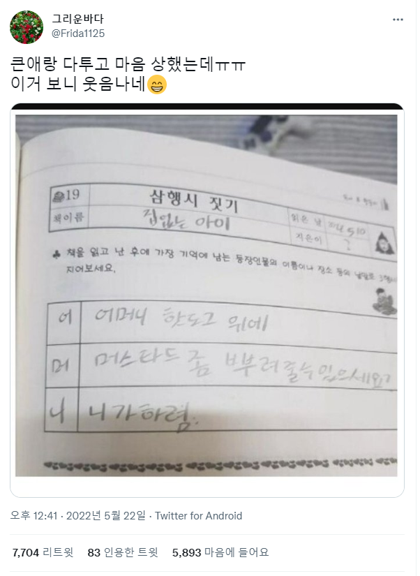 큰애랑 다투고 마음 상했는데 ㅠㅠ