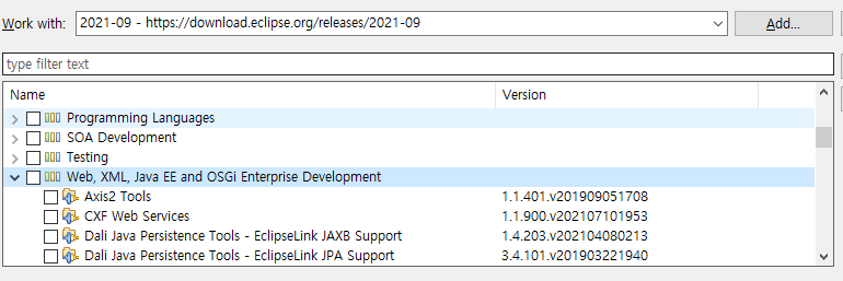 3. 스크롤내리면 있는 Wev, XML, Java EE and OSFi Enterprise Development 눌러서 아래 뜨는것중에 스크롤 내리면서