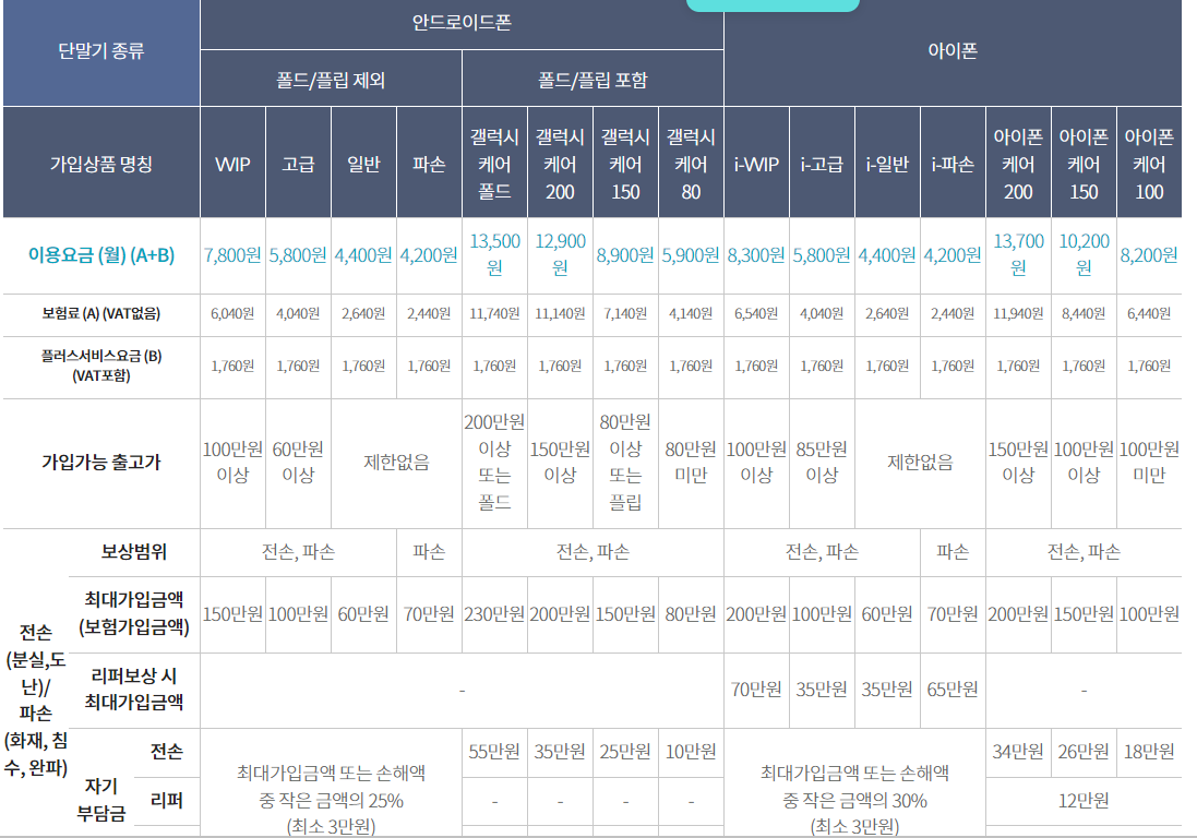 솔직히 말하면, 내가 내고 있는 보험인 갤럭시 케어 150은 위에 표에서도 확인할 수 있지만, 안드로이드 보험 중에 세 번째로 비싼 보험이다. VVIP 보험보다도 비싼 보험.