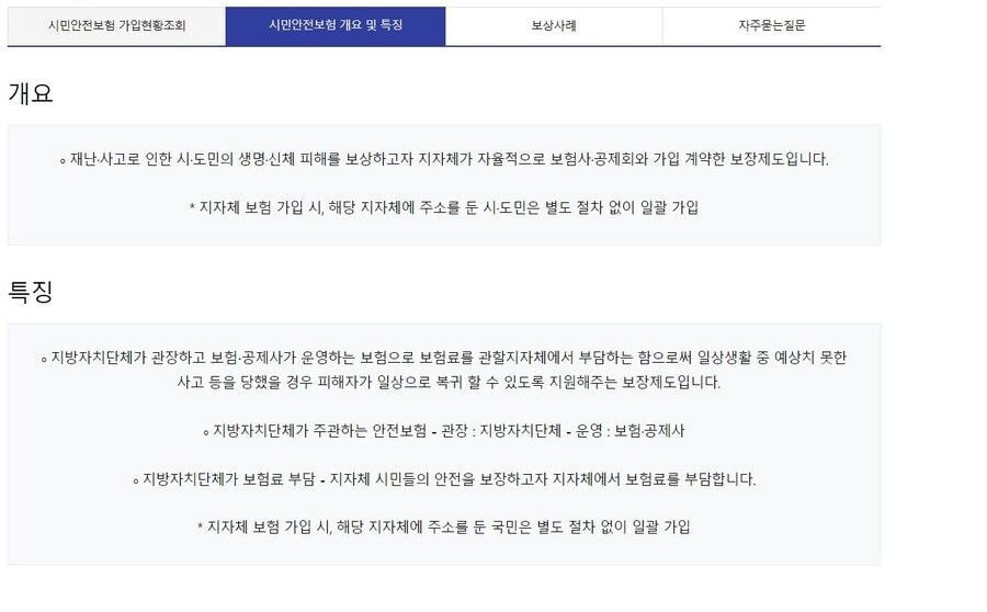∘ 지방자치단체가 보험료 부담 - 지자체 시민들의 안전을 보장하고자 지자체에서 보험료를 부담합니다.