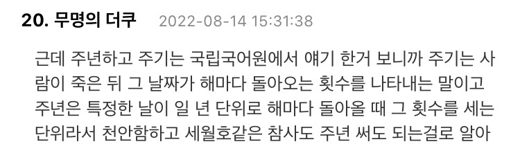 하지만 주기는 추모의 분위기를, 주년은 기념하는 분위기를 가지고 있습니다.