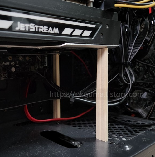 내 케이스는 뭐였는지 잘 기억 안 나는데, 내 본체 케이스 파워 부분과 그래픽카드의 공간 길이를 대충 확인해서 나무젓가락을 잘라서 만들었다.