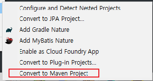 1. 해당 프로젝트 우클릭 > Configure > Convert to Maven Project 클릭