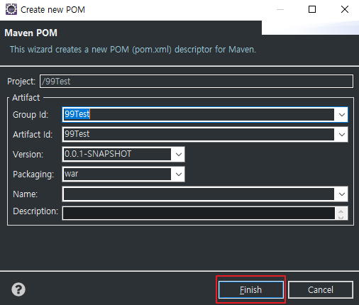 2) 딱히 내용 수정 하지 않고 Finish