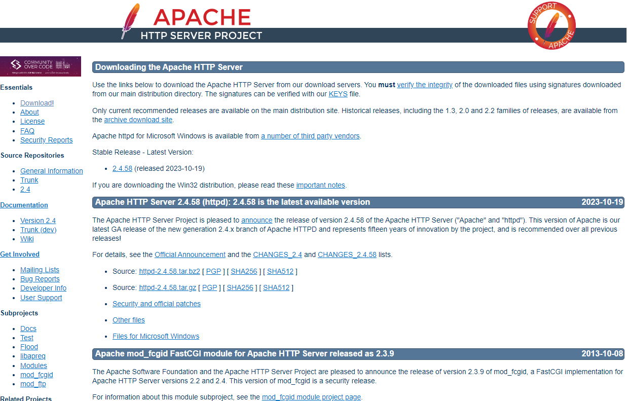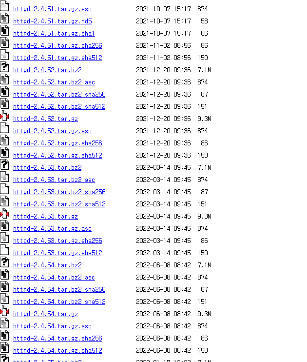 위에 링크로 들어가면 현재 가장 최신버전인 httpd-2.4.58 버전을 다운받을 수 있다.