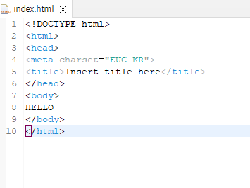 재시작하고 다시 localhost:8080 을 실행하면 아래 와같이 HELLO 작성된 index.html 페이지가 실행된다.