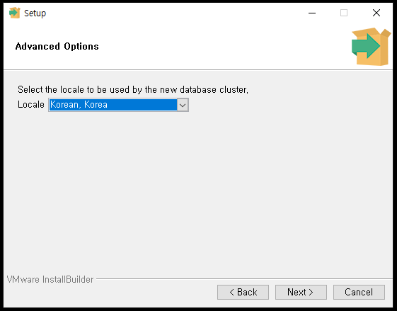 Locale 는 Korean, Korea로 하고 Next >