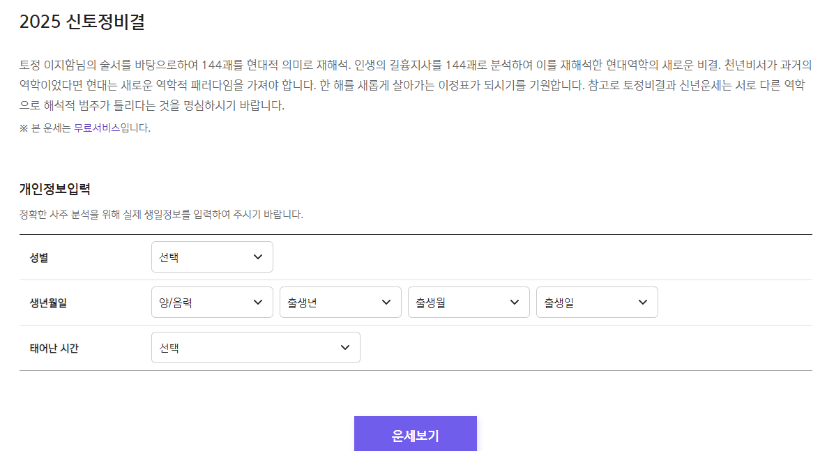 2025 신토정비결 토정 이지함님의 술서를 바탕으로하여 144괘를 현대적 의미로 재해석. 인생의 길흉지사를 144괘로 분석하여 이를 재해석한 현대역학의 새로운 비결. 천년비서가 과거의 역학이었