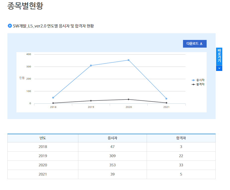 합격률은 생각보다 저조한 편이네.