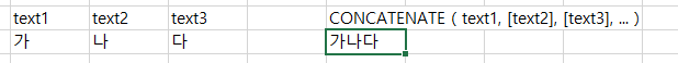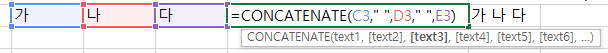 엑셀 CONCATENATE 함수는 여러개의 텍스트를 하나의 텍스트로 합쳐줌