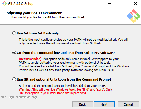 기본설정(환경변수로 등록되어 cmd등에서도 사용가능) > Next