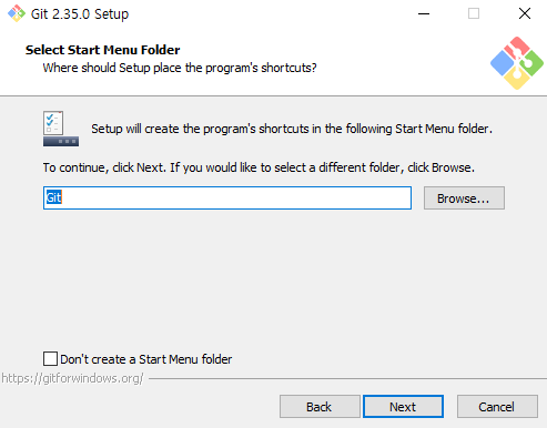 5. 시작 메뉴에 폴더 만들기 > 안만들고 싶으면 아래 체크박스 설정 > Next