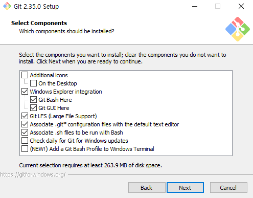 4. 설치할 요소들 선택 > 기본으로 선택된거 외엔 추가로 설치 안했는데 원하는대로 선택 > Next