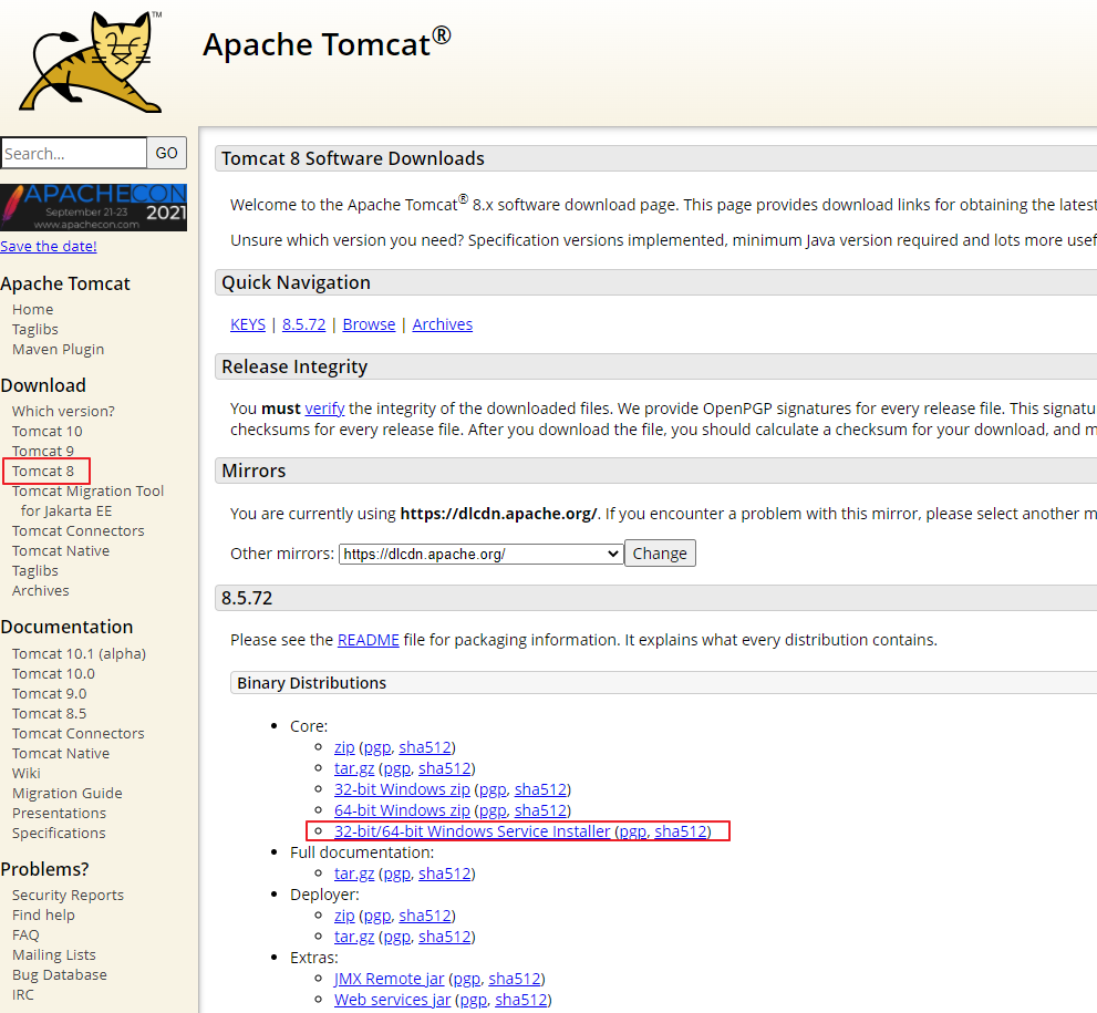 1. 톰캣 사이트에 접속하여 원하는 톰캣 버전 다운 https://tomcat.apache.org/download-80.cgi Apache Tomcat® - Apache Tomcat 8 Software Downloads Welcome to the Apache Tomcat® 8.x software download page. This page provides download links for obtaining the latest versions of Tomcat 8.x software, as well as links to the archives of older releases. Unsure which version you need? Specification versions tomcat.apache.org 나..
