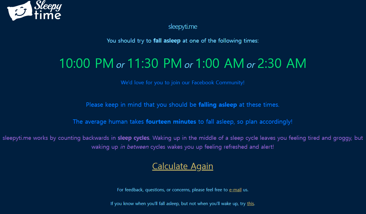 적정 수면시간을 계산해주는 사이트 - 슬리피 타임